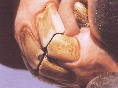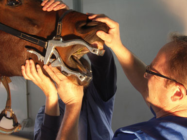 Vielen Pferdebesitzern ist zunehmend bewusst, wie wichtig die Pflege der Zähne für das Pferd, sein Wohlergehen und seine sportliche Leistung ist. Wir haben z.B. beobachtet, dass bestimmte Lahmheiten gar nicht wirklich existierten, sondern Ausdruck von Zahnschmerzen waren. Unser Team begann die Praxis der Zahnbehandlungen im Jahr 1982 und seitdem haben wir viele technologische und methodische Innovationen eingeführt, beispielsweise motorgetriebene Fräsen, Silikon-Implantate, usw. Generell empfehlen wir eine jährliche Vorsorge für erwachsene Pferde und häufiger für Jährlinge und Pferde zwischen 4 und 5 Jahren.